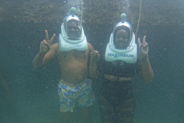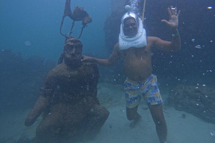 Underwater Walk with Scaphanders – Non-swimmers can walk beneath the ocean and interact with tropical fish!
